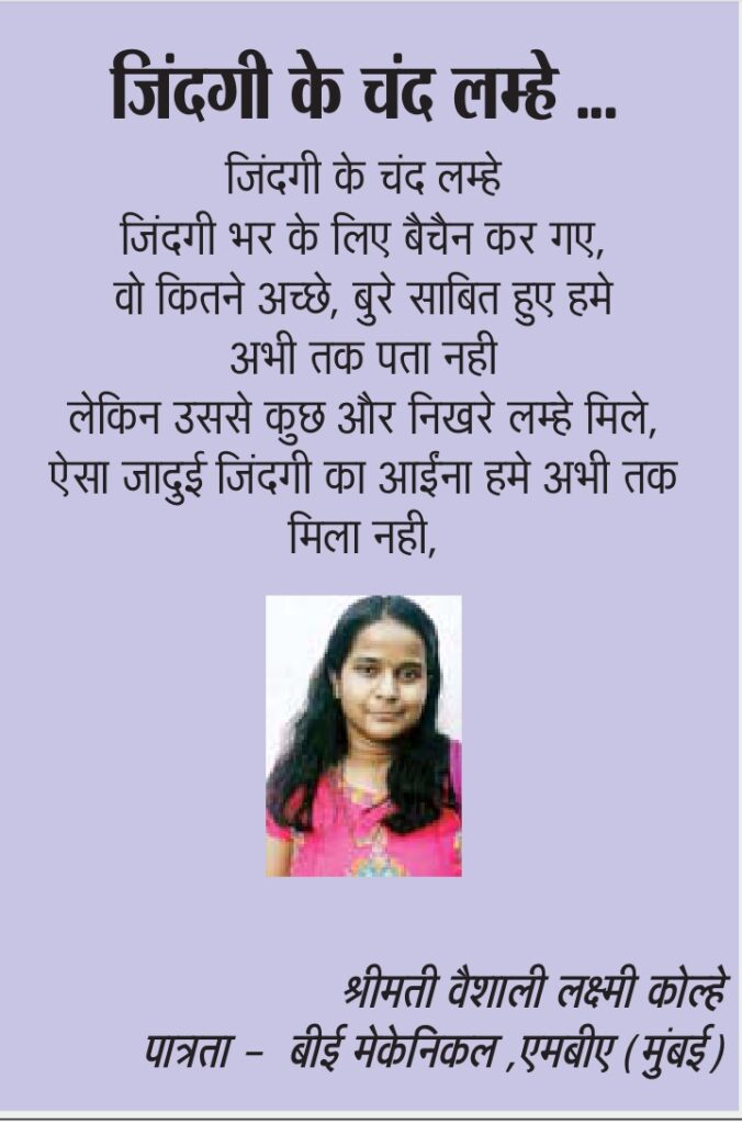 लोगो का मौताज जमाना, बिखरे कचरे मे खजाना ढुंढते है l भुले बिसरे और कुछ लोग, बिते यादो मे, गुजरा जमाना ढुंढते है | क्योंकी मिटती नही हस्तीं, जिनकी वक्तके मिटानेसेभी, वो लोगोकी दुनिया, वक्तमे सिमटनेके बादभी, दुनिया मे बचे लोग उनका फसाना ढुंढते है |
